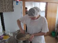 Na prípravu šalátu použila: uvarené cestoviny, kyslú kapustu, vajcia uvarené na tvrdo, sterilizovanú kukuricu, šunku,cibuľu. Suroviny zmiešala, ochutila soľou a korením. Na záver pridala majonézu a pochúťkovú smotanu.