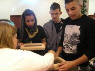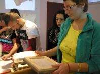 Dňa 23.11.2016 sa žiaci odborného učiľišťa a praktickej školy zúčastnili posledného podujatia z cyklu Tvorivé výpravy do minulosti - papierový príbeh - o starej papierni a výrobe papiera. Úvodná časť formou prezentácie bola zameraná na históriu vzniku výroby papiera od zapisovania rytím na skalu, hlinené a voskové doštičky, písanie na papyrus a pergament. Prvý papier vznikol v Číne a jeho výroba sa rozšírila do Európy, kde sa dnes vyrába z bavlneného a ľanového plátna. V roku 1758 vznikla papiereň v Kamenci pod Vtáčnikom, ktorá fungovala sto rokov. Handrári zbierali staré textílie na výrobu papiera a vymieňali ich za iný tovar. Žiaci následne v rámci tvorivých dielní pripravili kašovitú hmotu, do ktorej pridali farby a bylinky a nalievali do rámčeka so sitom. Na záver tvorili vianočné pohľadnice z papiera ľubovoľnou technikou podľa vlastnej fantázie.