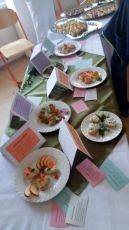 V téme Najedzme sa do štíhlosti sa zamerali na produkty jesenných zberov v domácich záhradách. Ovocnými a zeleninovými nátierkami vzbudili u žiakov chuť k zdraviu a inšpirovali ich jesť chutné, nutrične vyvážené jedlá.