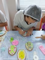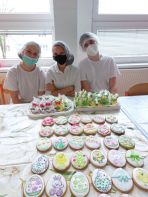 Žiaci našej školy pod vedením majsteriek Mgr. Ďurišovej a Pružincovej pripravili rôzne tradičné koláče k Veľkej noci – veľkonočného zajaca, barančeka, mazanec i sušienky. Tieto výrobky prezentovali žiakom OU a PŠ, ktorí mali tiež možnosť ochutnávky. Ako prekvapenie žiaci cukrárskej výroby rozdávali zdobené veľkonočné vajíčka a zajačikov z medového cesta svojim spolužiakom a učiteľom.