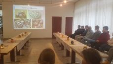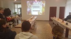 Prvú časť podujatia tvorila prezentácia odprezentovaná lektorkou Janou Slosiarovou, ktorá zahŕňala fotografie od najstaršieho farbenia cibuľovými šupkami cez oblepovanie slamou či bavlnkami, batikovanie, leptanie, gravírovanie, paličkovanie až po techniku sitiny či voskovanie. Tiež sa dozvedeli, aké sú najdrahšie veľkonočné vajíčka na svete.