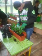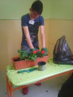 V teoretickej časti si žiaci overili vedomosti formou testu, v praktickej časti súťaže vysádzali tuje do záhona a do válovcov sadili muškáty.